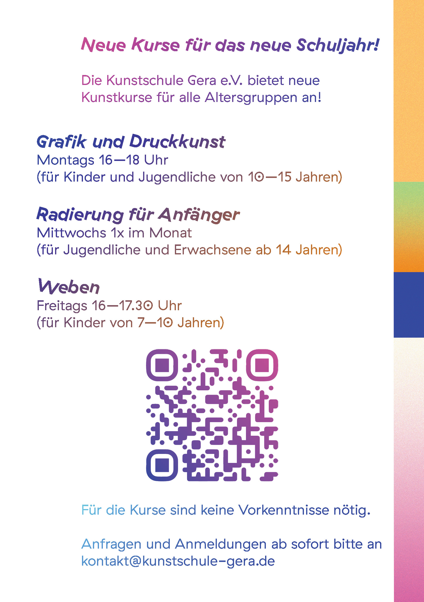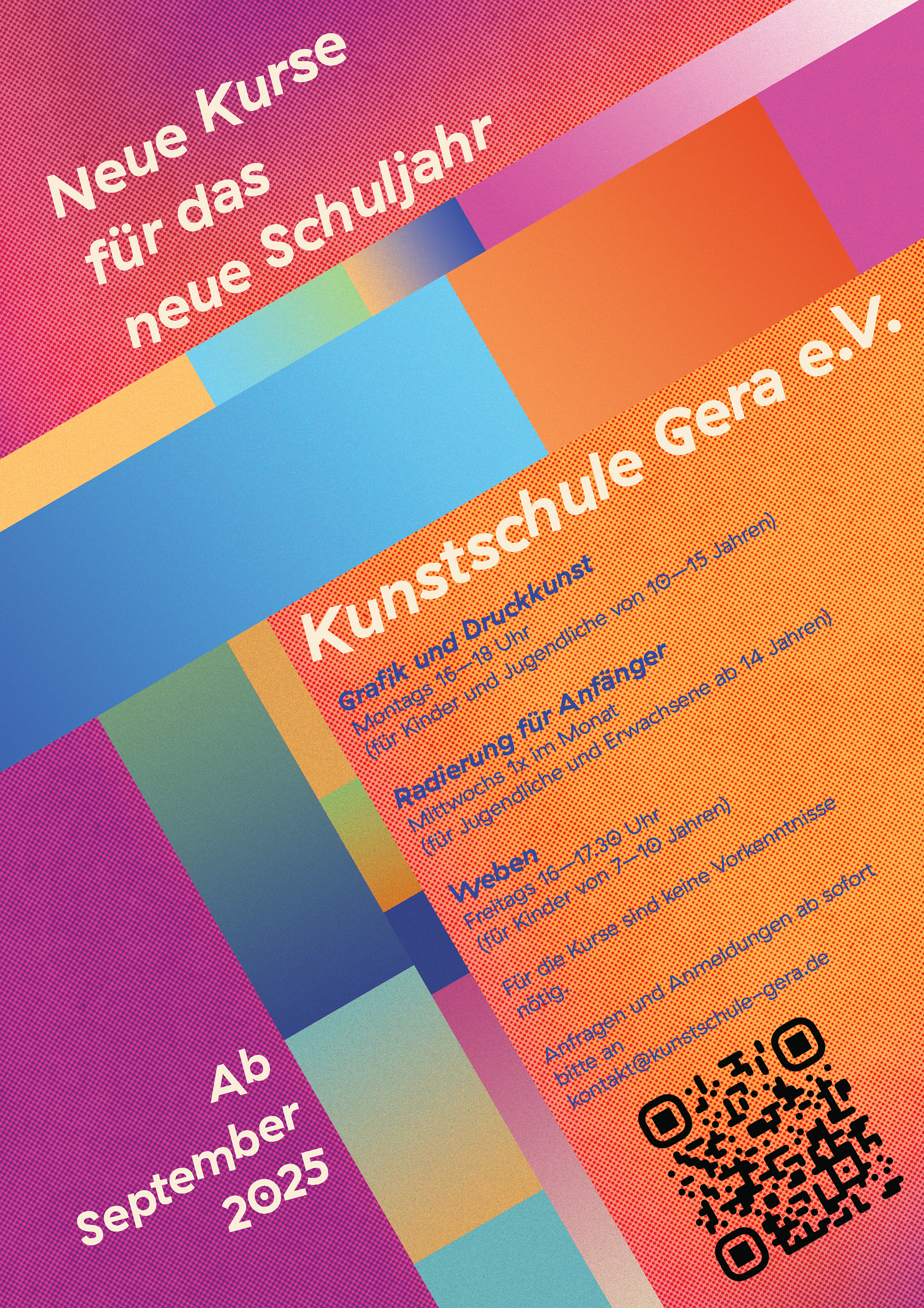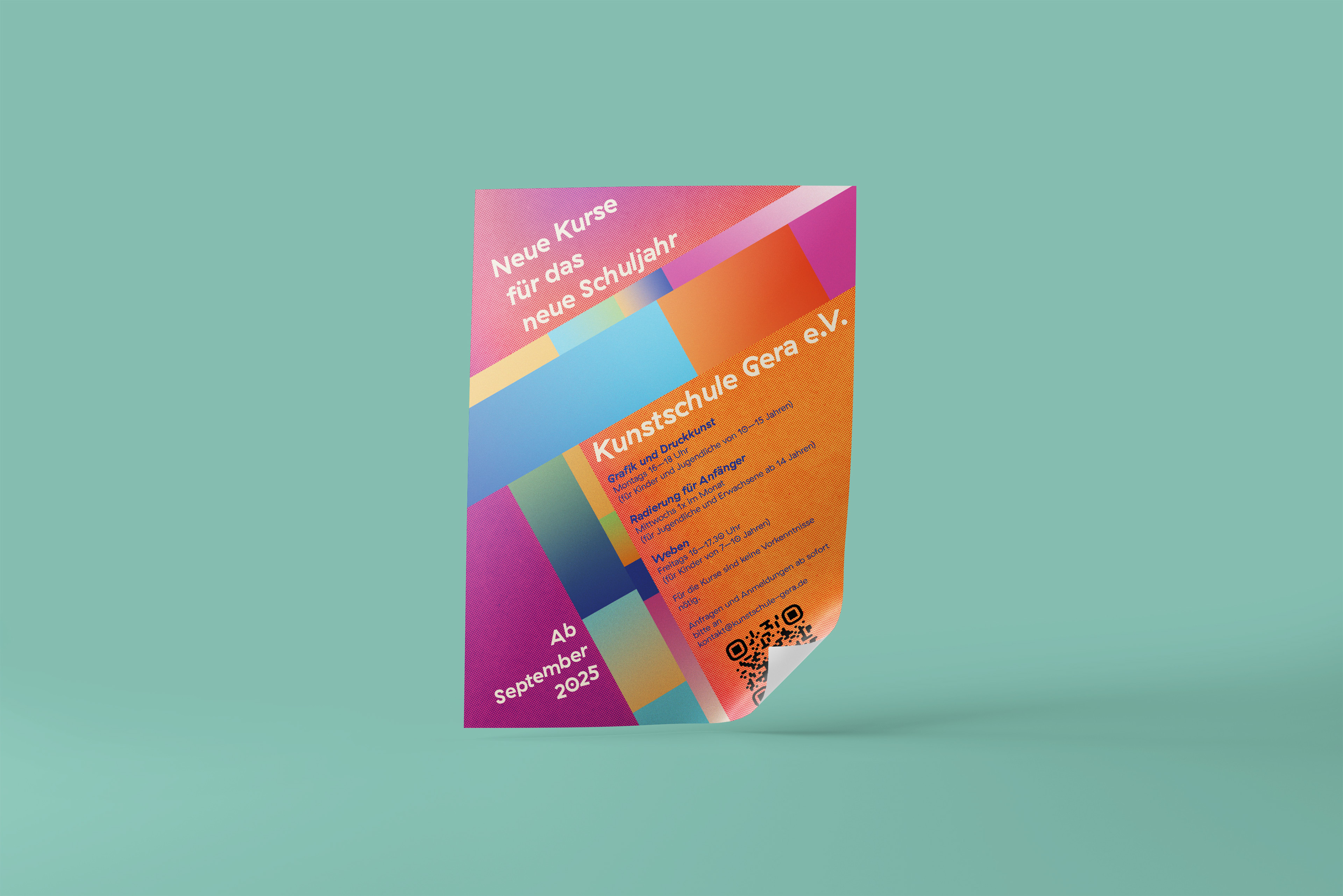 Poster- und Flyer-Design für die Kunstschule Gera.